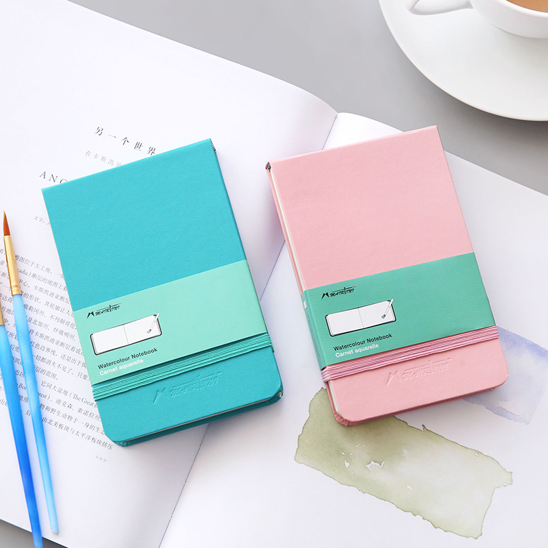 云木雜貨 皮質水彩本300g水彩紙A6手帳本手繪速寫旅行隨身繪畫本