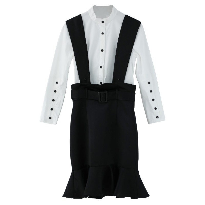/ 2018秋季新款復古港味背帶吊帶裙套裝襯衫加連衣裙名媛兩件套裙潮