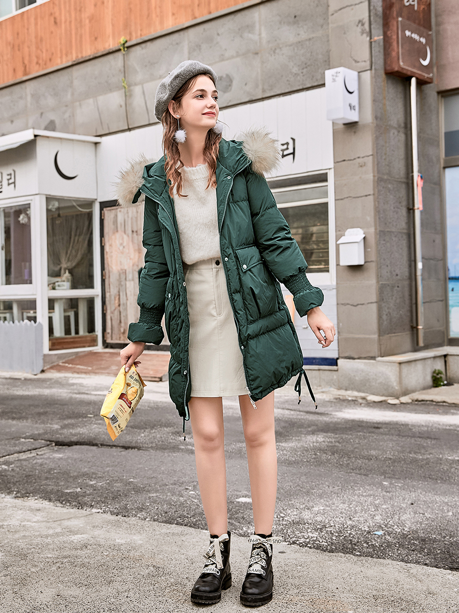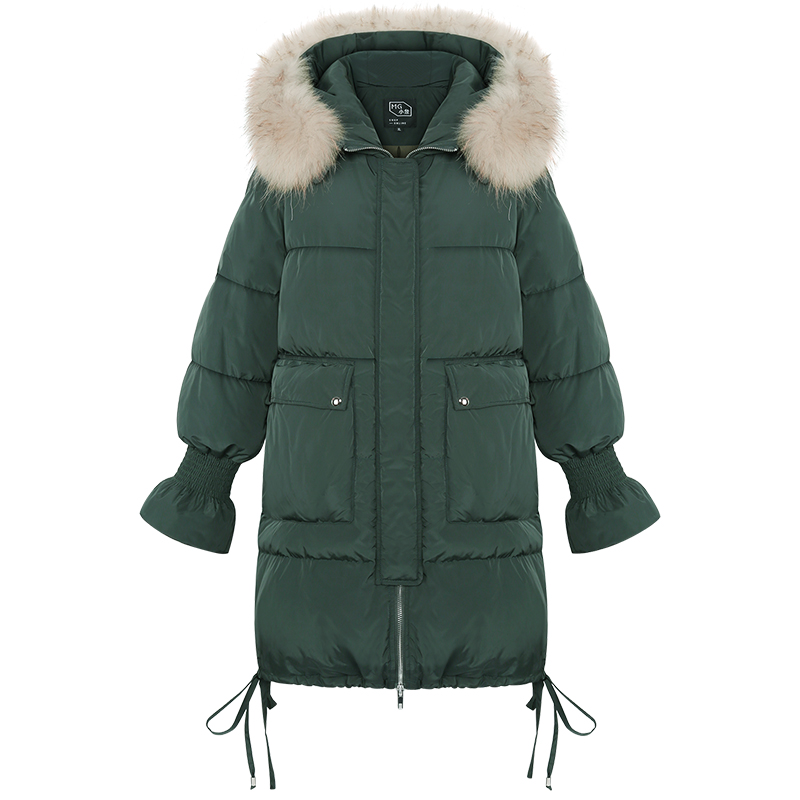 MG小象白鴨絨羽絨服女2018新款加厚中長款時尚寬松連帽冬裝外套潮
