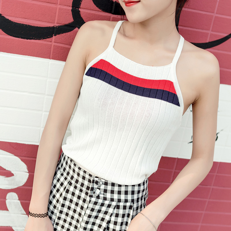 2017夏裝新款女裝吊帶背心女拼色百搭修身顯瘦無袖學生針織上衣潮