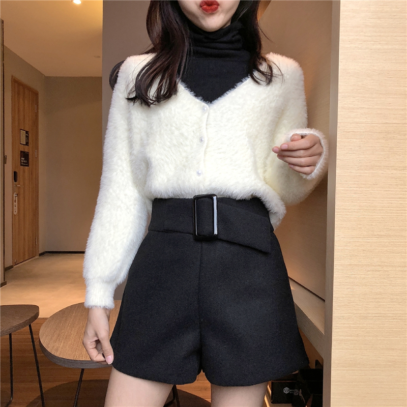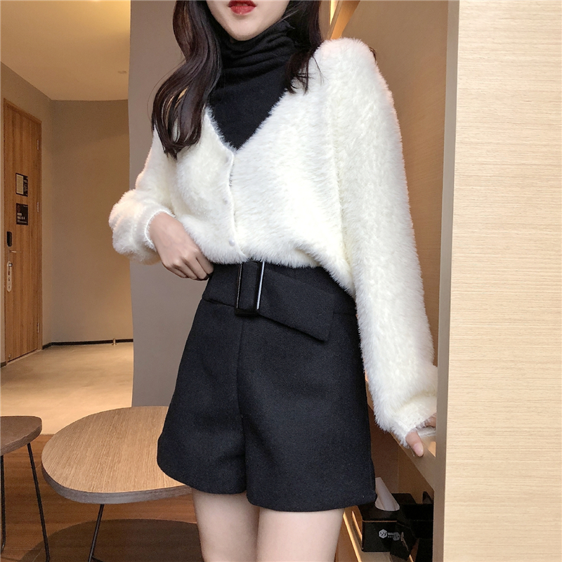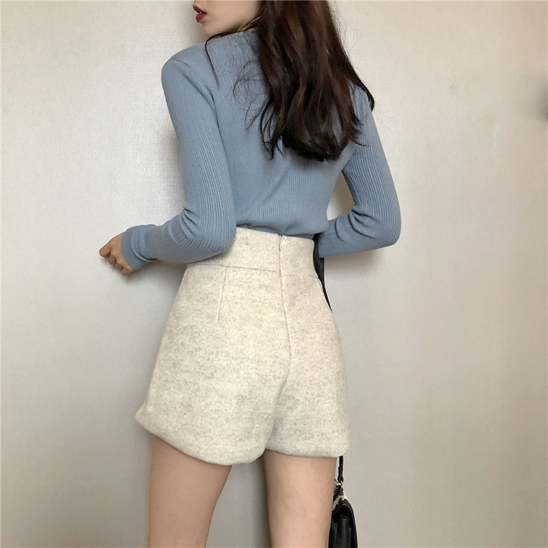 呢子短褲女秋冬2018新款韓版百搭a字外穿chic高腰褲加厚闊腿靴褲