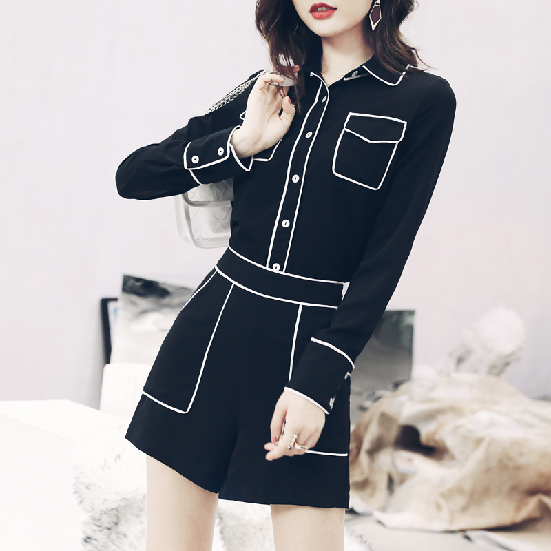 名媛氣質夏季女韓版極簡風襯衫長袖上衣短褲收腰顯瘦時尚套裝秋