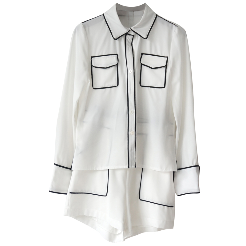 / 名媛氣質夏季女韓版極簡風襯衫長袖上衣短褲收腰顯瘦時尚套裝秋