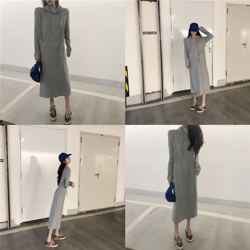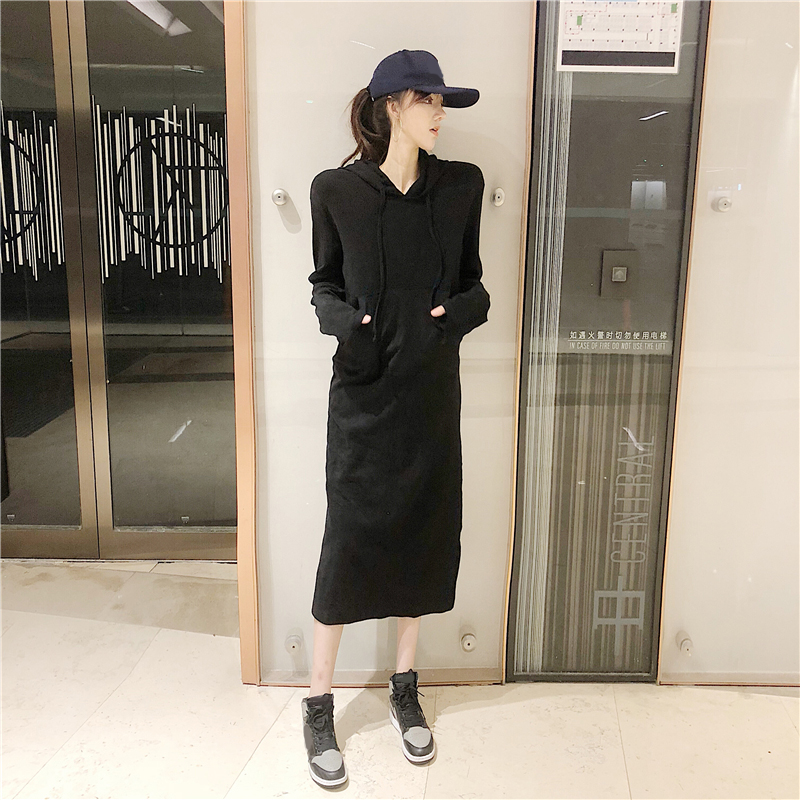 / 連衣裙秋裝2018新款女chic長款衛衣裙加厚連帽過膝bf氣質打底裙潮