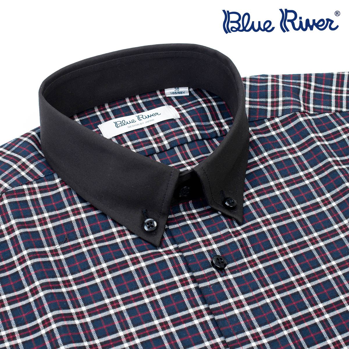 / 藍河格子襯衫男長袖商務休閑純棉修身襯衣男秋季新款潮流時尚裝