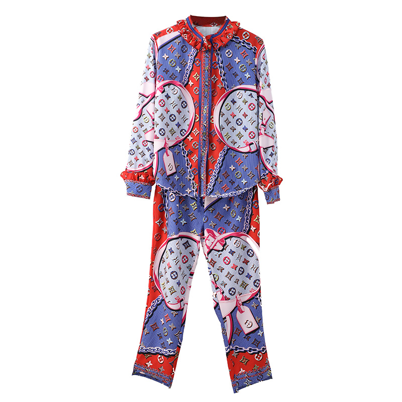 / 網紅2018秋季新款女長袖chic印花襯衫上衣小腳褲七分褲兩件套裝潮