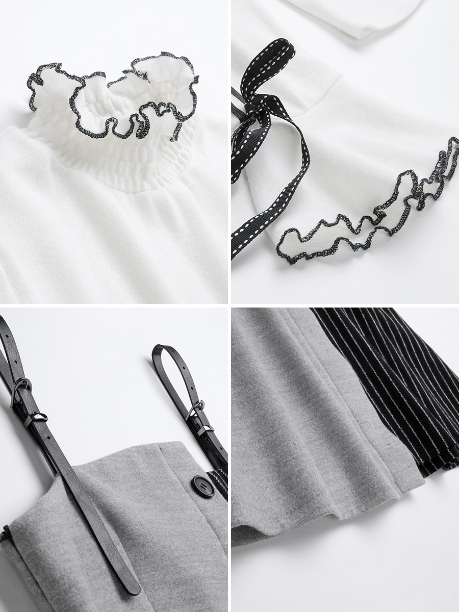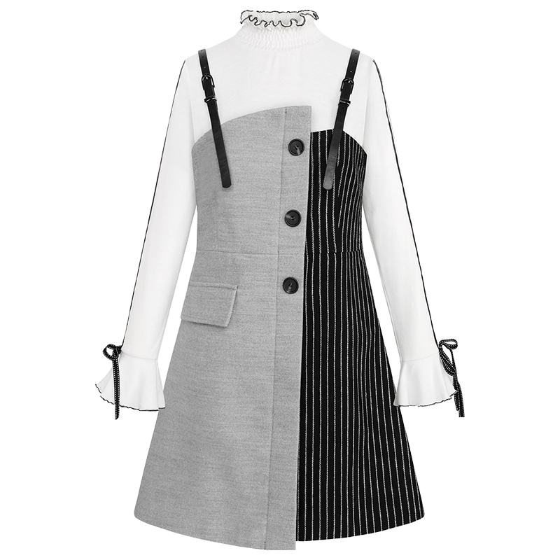MG小象秋冬氣質連衣裙女2018新款長袖白色打底衫不規則吊帶裙子潮