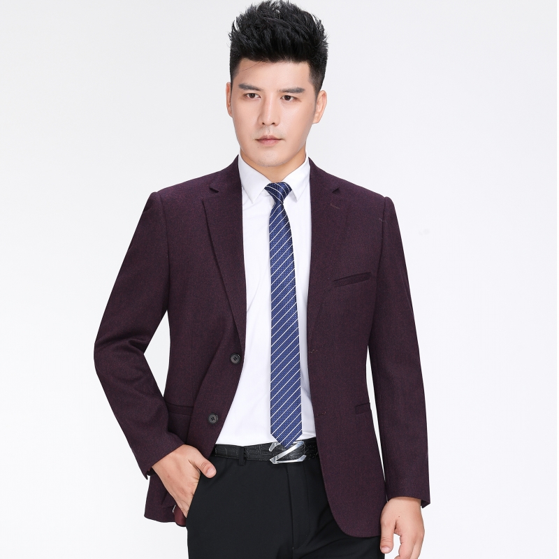 / 秋裝新款品牌中年男士修身羊毛西服商務休閑男裝單件西裝外套上衣