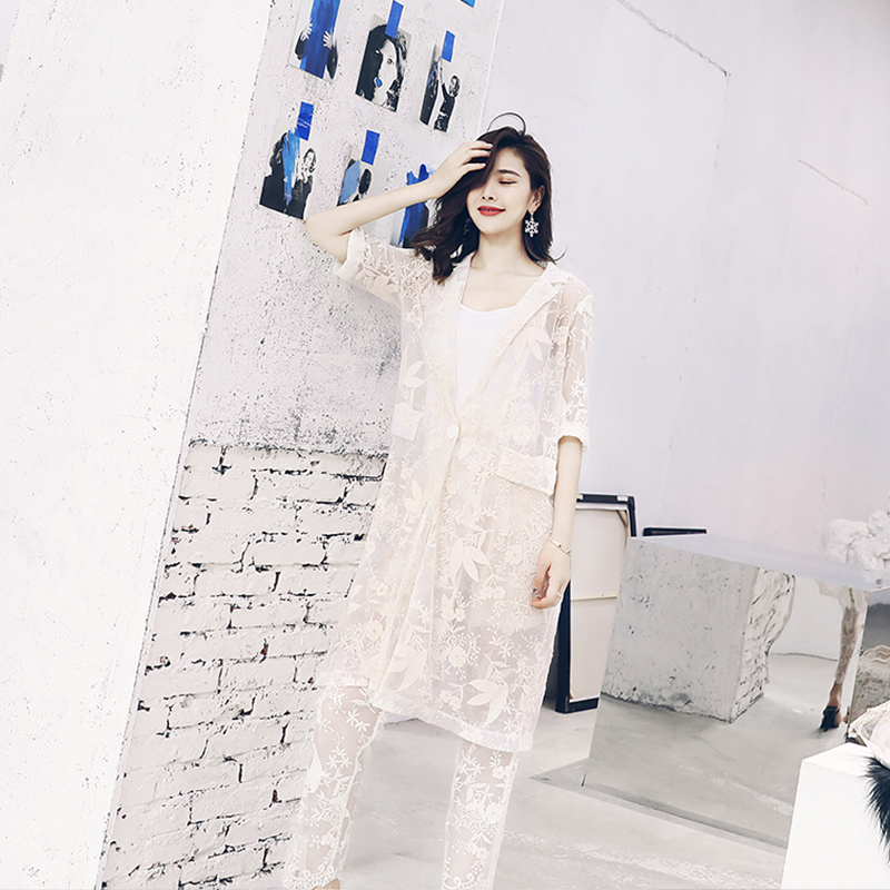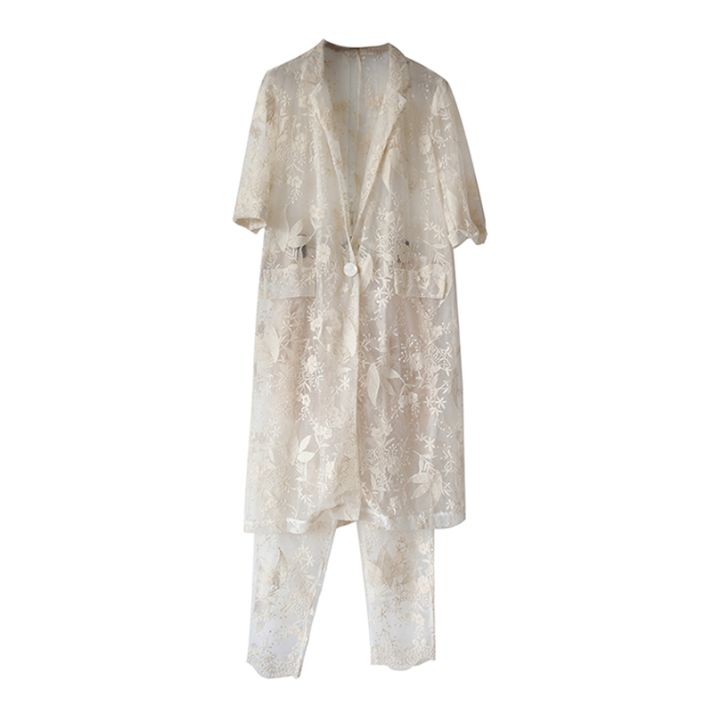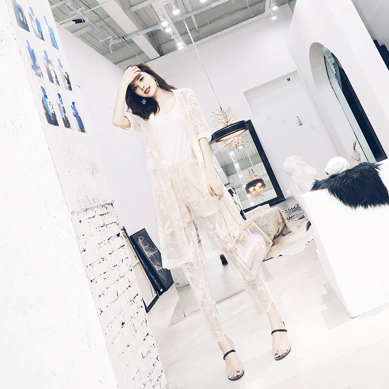 S秀名媛氣質夏季套裝女2018新款時髦網紗拼接印花披肩時尚兩件套