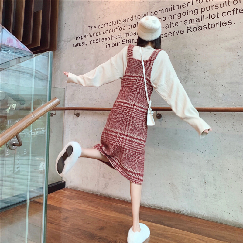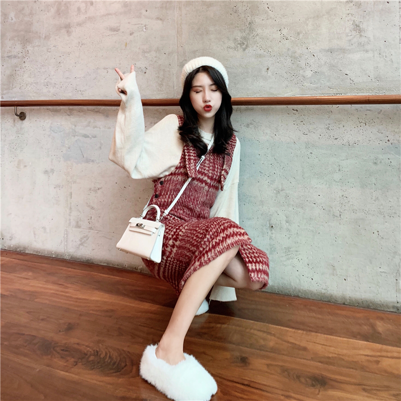 不要以為秋冬穿背帶裙會冷噢,毛呢的材質是很有質感的,穿起來暖暖的