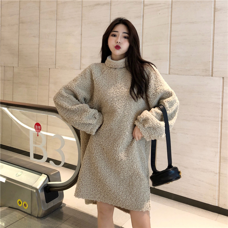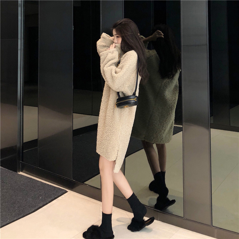 / 新款韓版chic時尚百搭氣質秋冬女加厚保暖寬松套頭中長款衛衣外套
