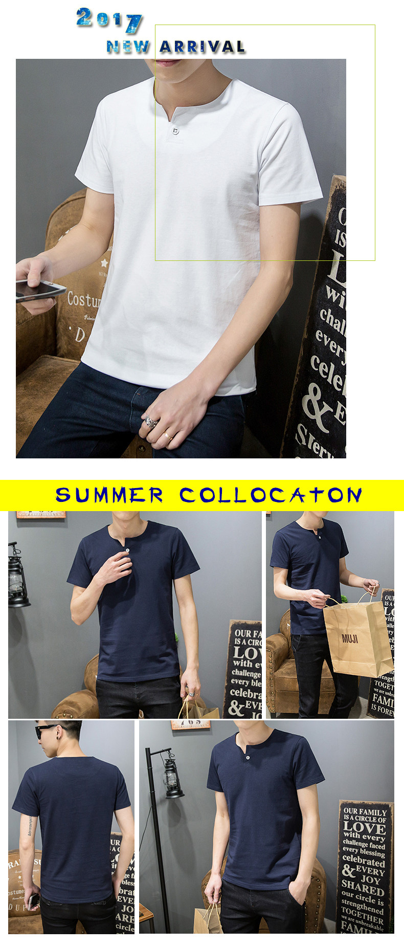 / 夏季男士短袖t恤v領純棉韓版圓純色上衣服潮男裝半袖體恤修身