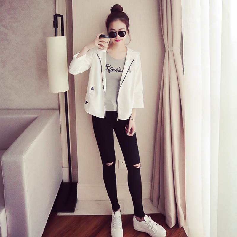 ■Brand/品名:短外套女字母貼布拉鏈七分袖個性連帽薄百搭上衣