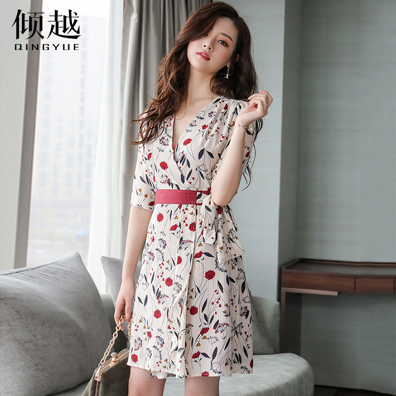 小碎花V領雪紡連衣裙印花心機裙子2017新款夏田園小清新韓版仙女