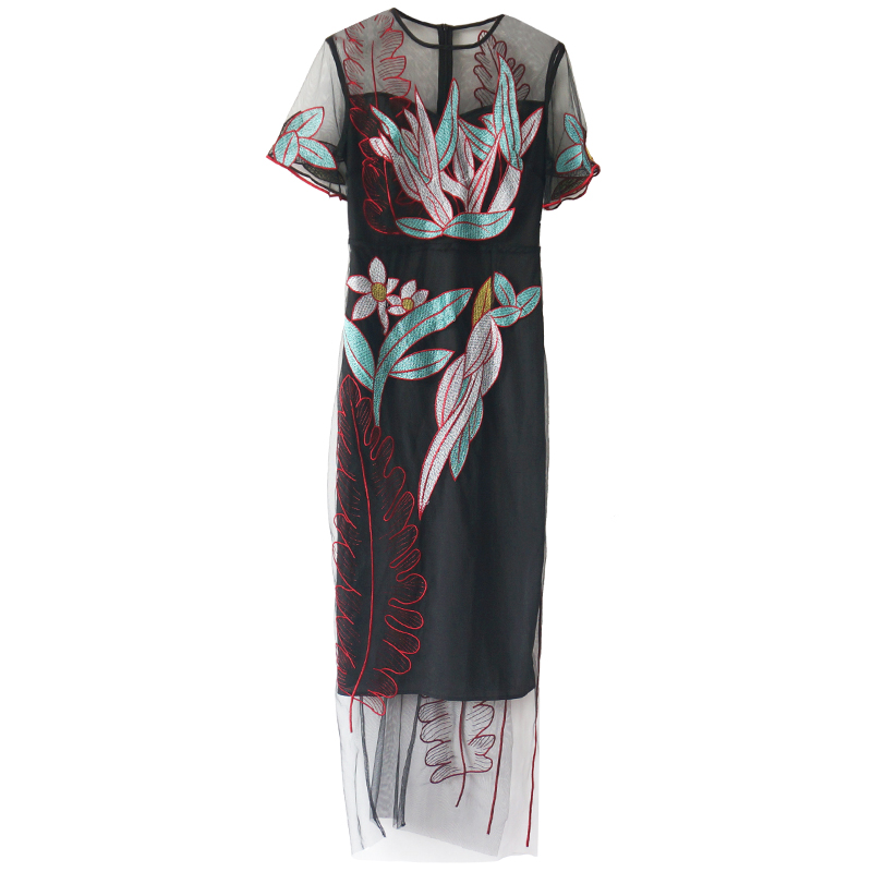 / 連衣裙2018夏新款女裝網紗拼接刺繡超仙長裙潮氣質修身顯瘦潮裙子