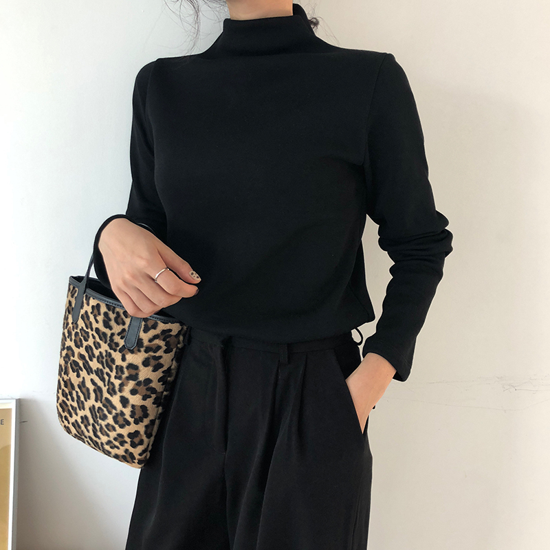 / chic韓風加絨加厚秋冬套頭新款百搭時尚上衣修身長袖打底衫T恤女