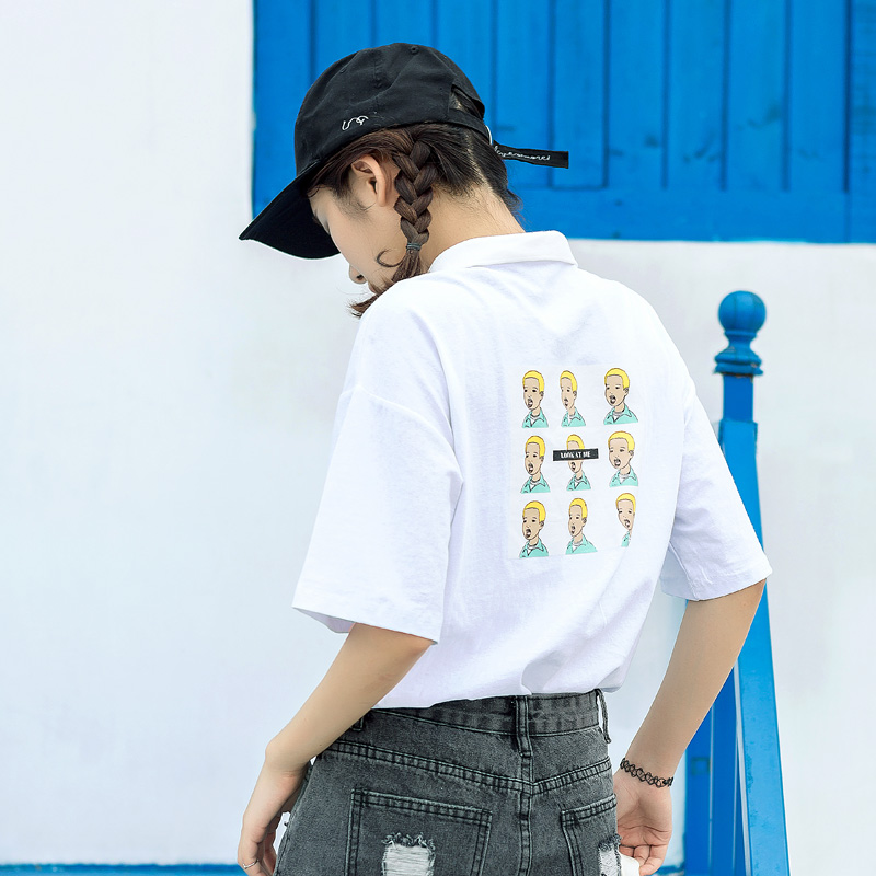 后背小個性的印人頭圖案,簡約中又有點小性格的設計