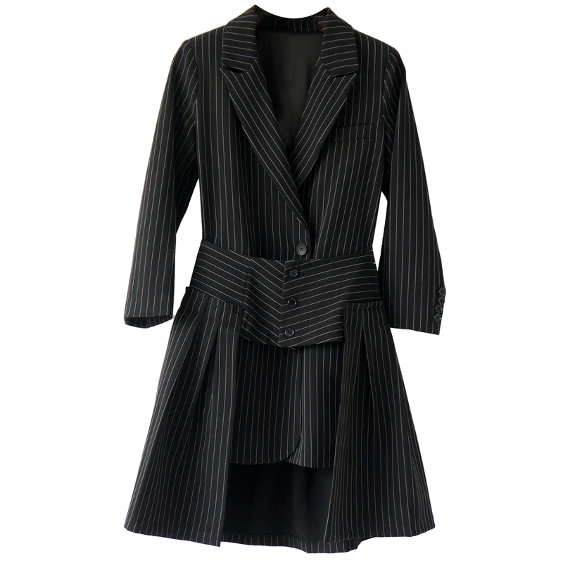 / 名媛氣質條紋套裝2018春季新款女時尚修身西裝外套半身裙兩件套潮