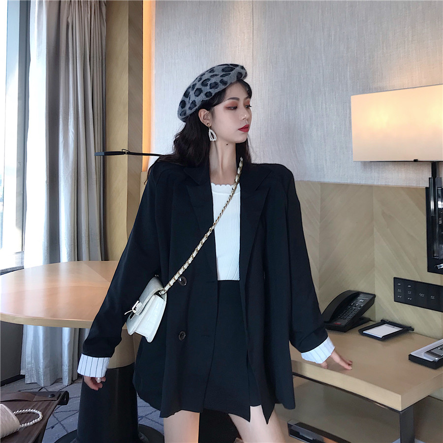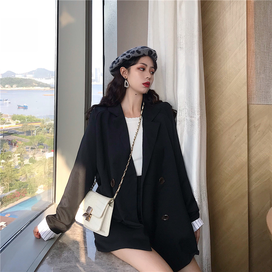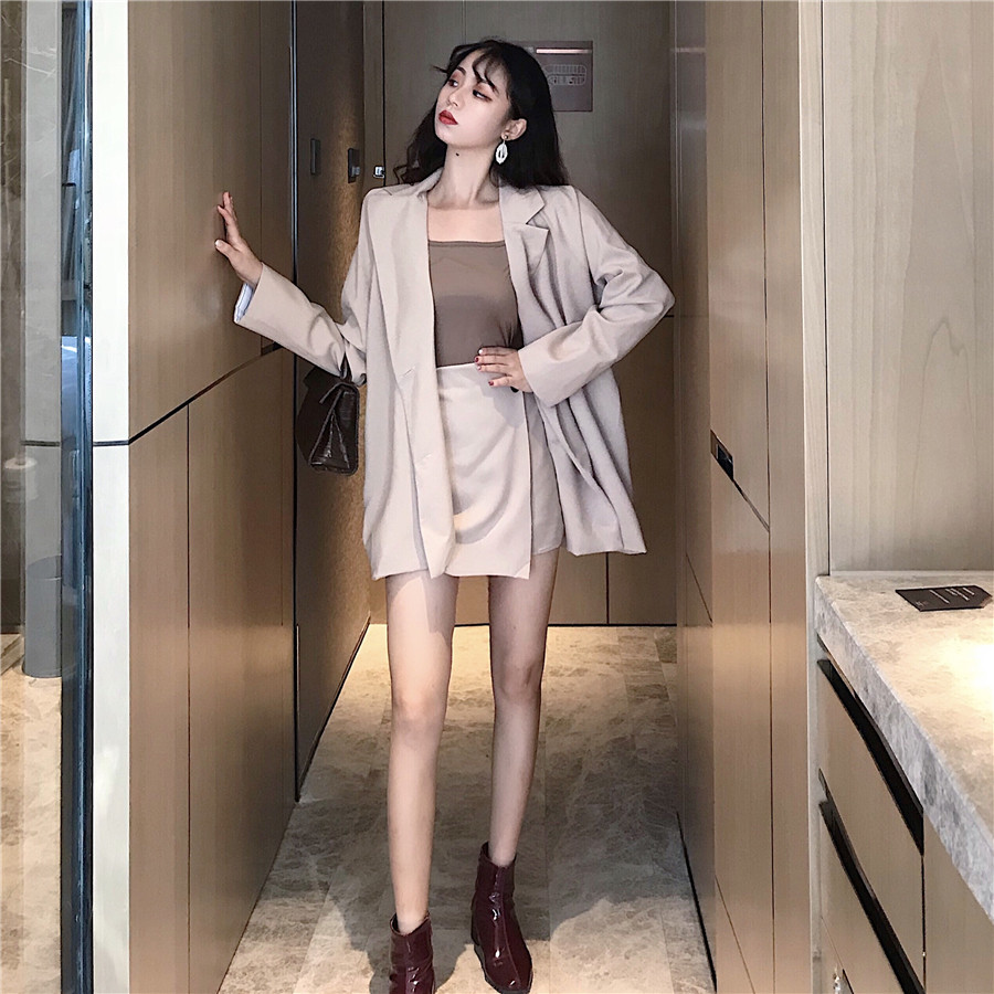 / 網紅時尚秋季時尚套裝韓版小西裝寬松chic氣質高腰半身裙兩件套潮