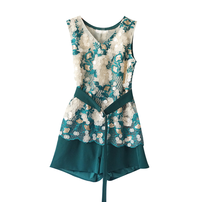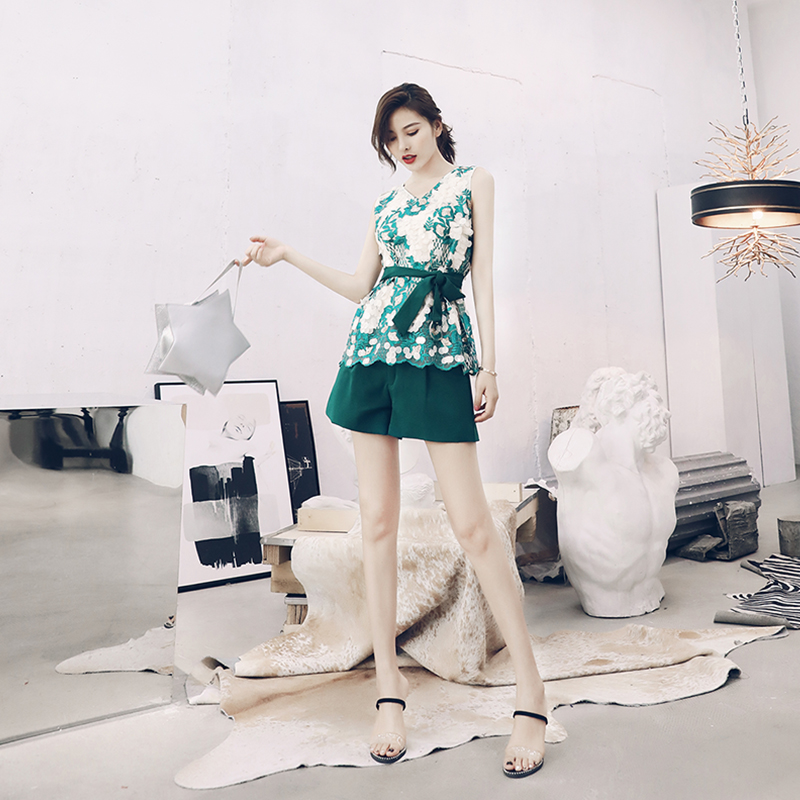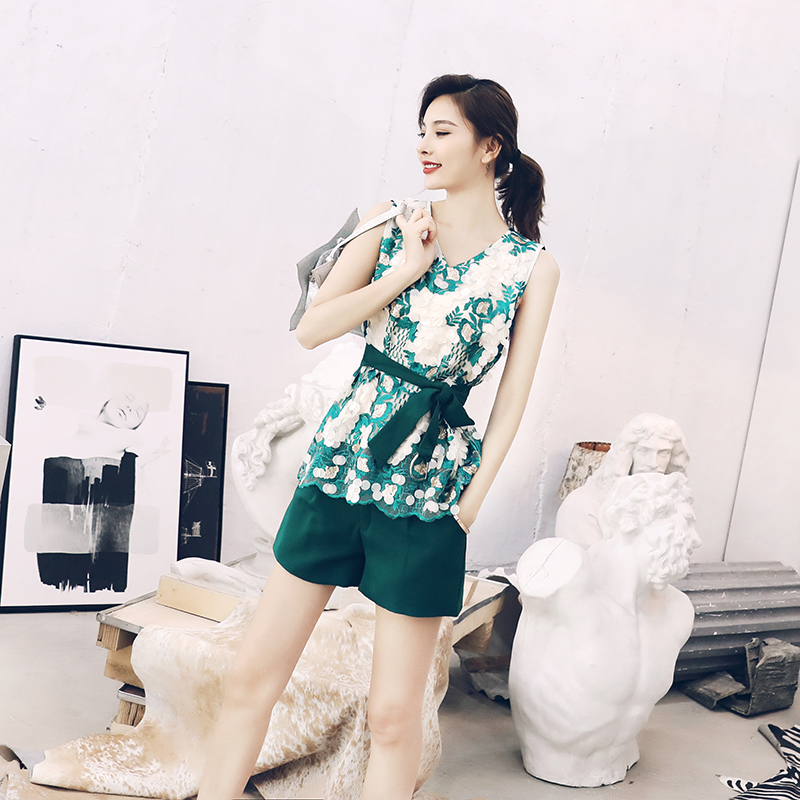 港味名媛小香風時尚短褲套裝女無袖繡花刺繡上衣闊腿褲chic兩件套