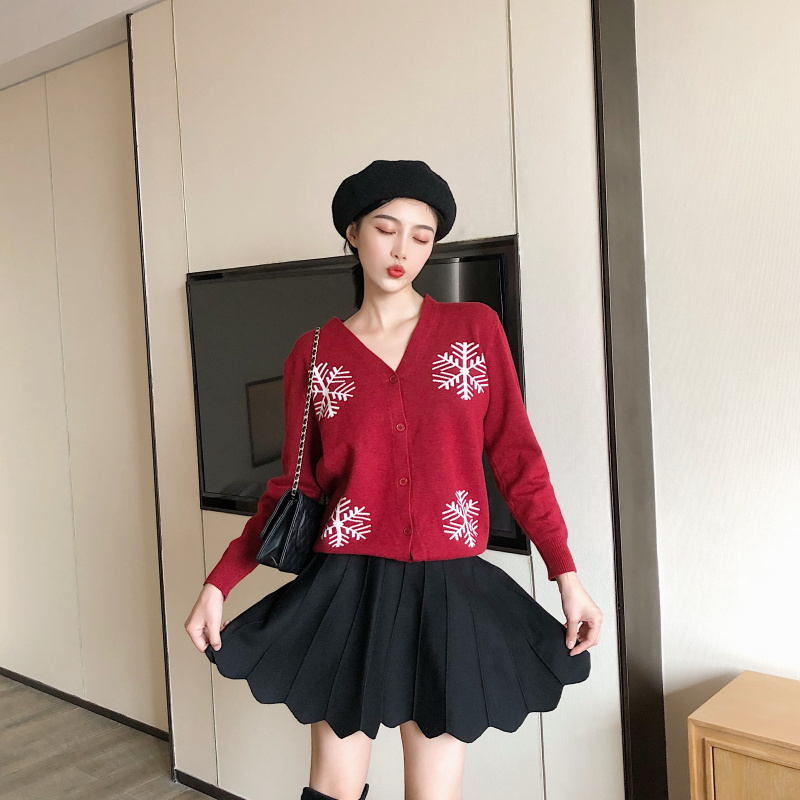 / 2018秋冬新款韓版chic修身百搭雪花針織衫開衫高腰半身裙時尚套裝
