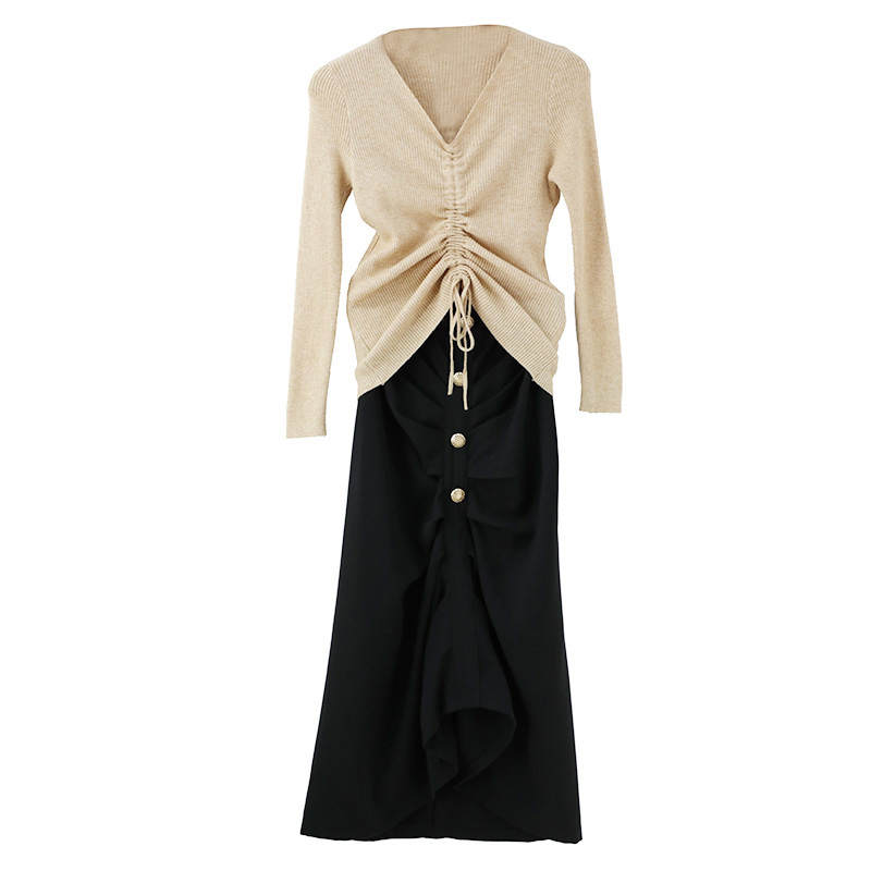 / 名媛氣質秋冬季女套裝時尚網紅中長款高腰字半身裙毛衣針織衫兩件