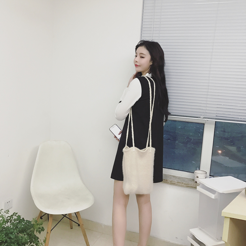 / 港味時尚新款韓版秋季假兩件系帶蝴蝶結黑白拼色喇叭袖連衣裙女潮