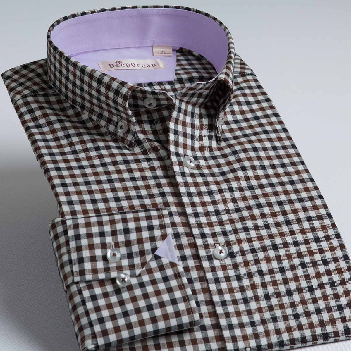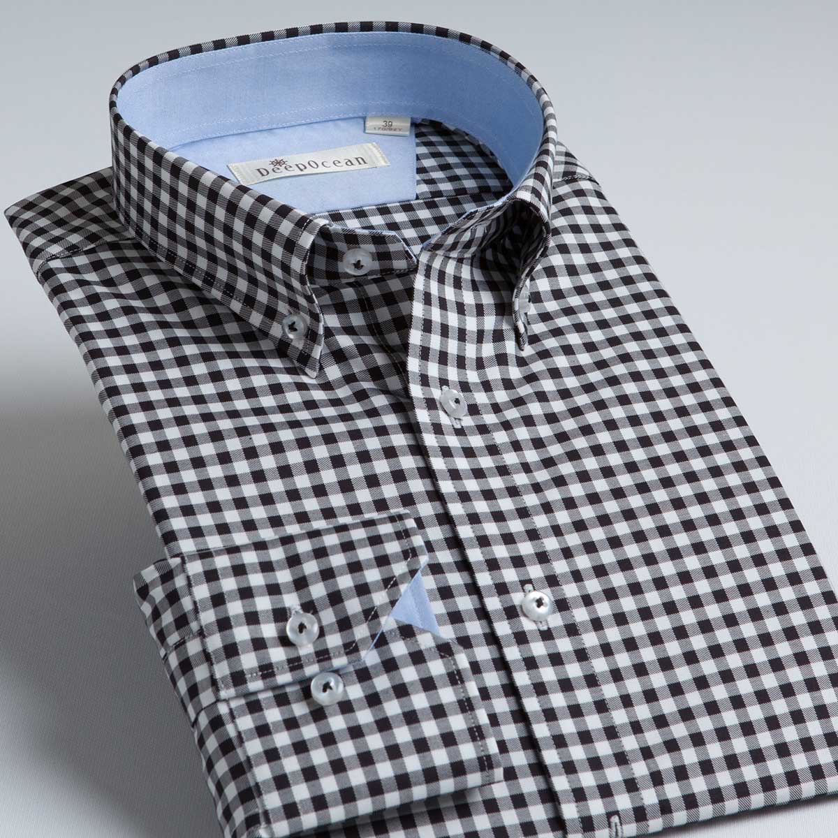 / 深海格子襯衫襯衣男長袖釘扣領時尚商務修身純棉免燙秋裝男裝