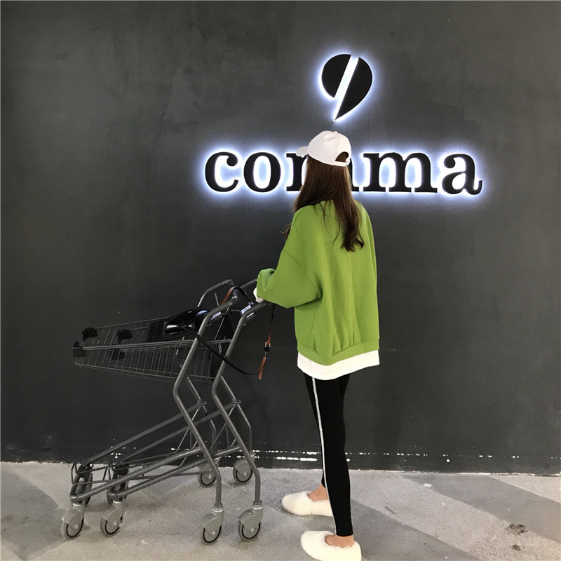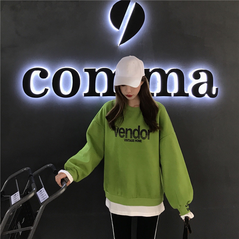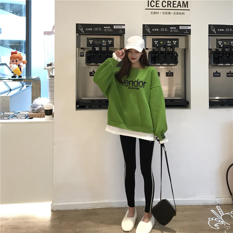 / 新款韓版寬松bf慵懶風假兩件加絨衛衣側邊緊身顯瘦打底褲時尚套裝
