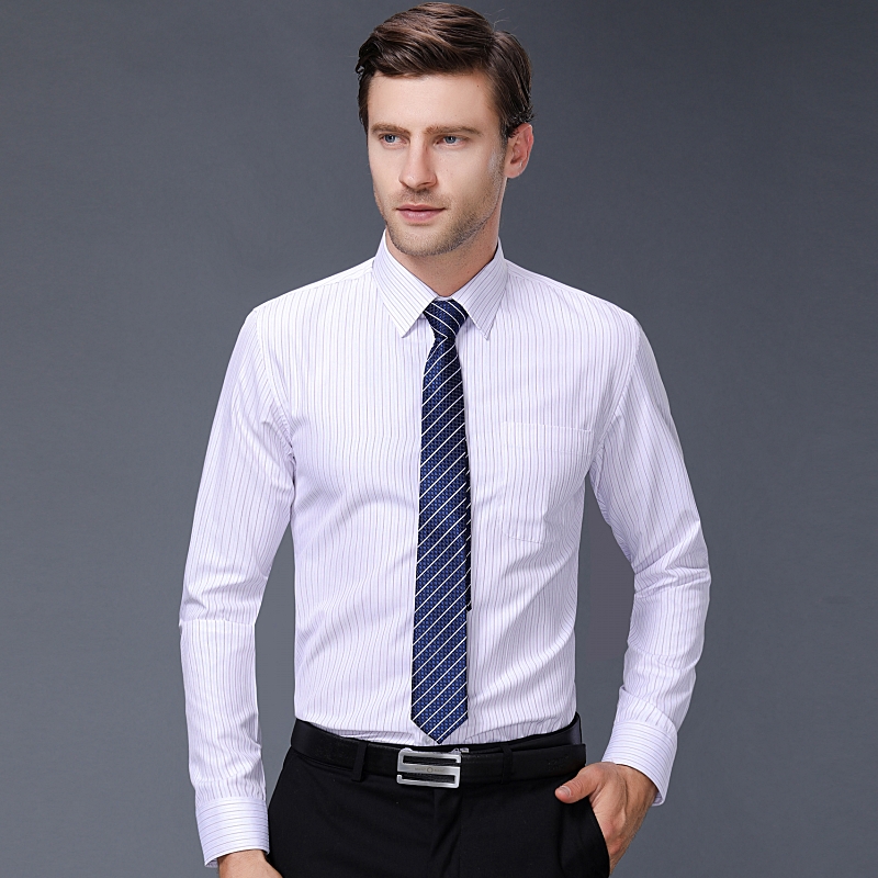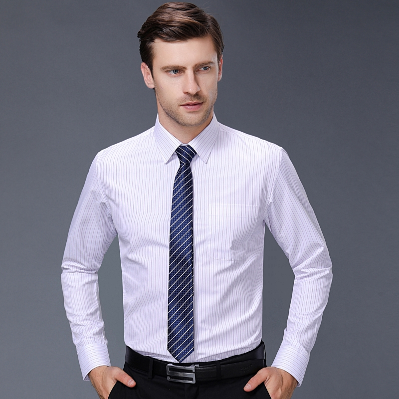 2018秋裝新款品牌中年男士長袖襯衫商務休閑男裝條紋純棉免燙襯衣