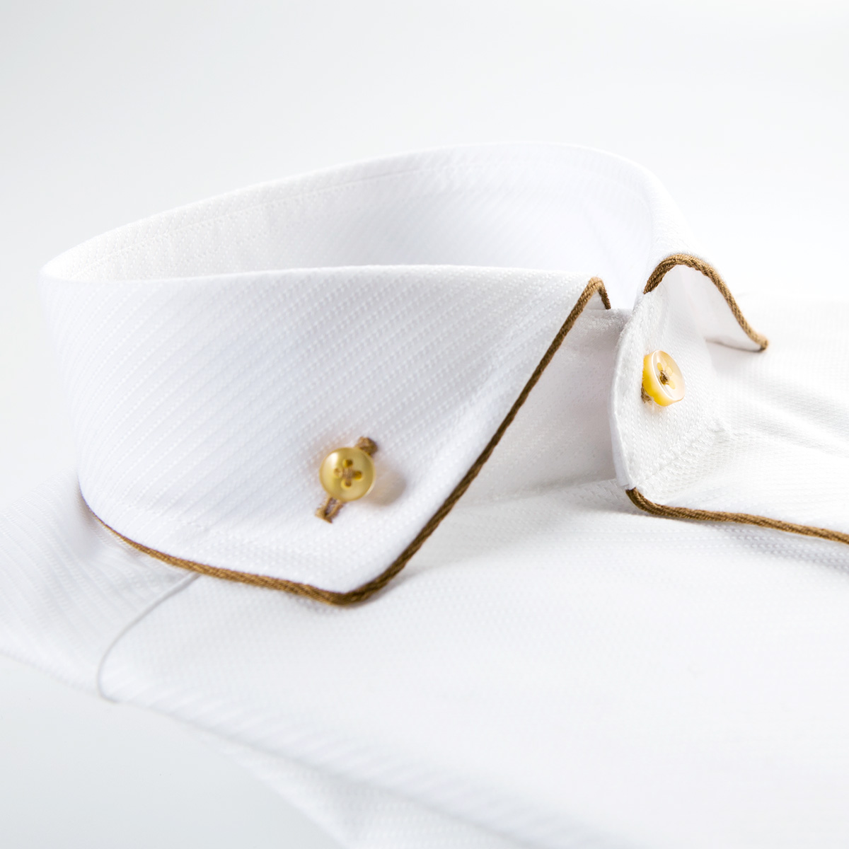 / 深海男士宮廷風白色斜紋襯衫男長袖法式修身小領純棉中年款襯衣