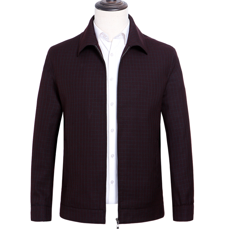 / 秋款花花公子中老年男士夾克衫商務休閑男爸爸裝翻領格子外套上衣