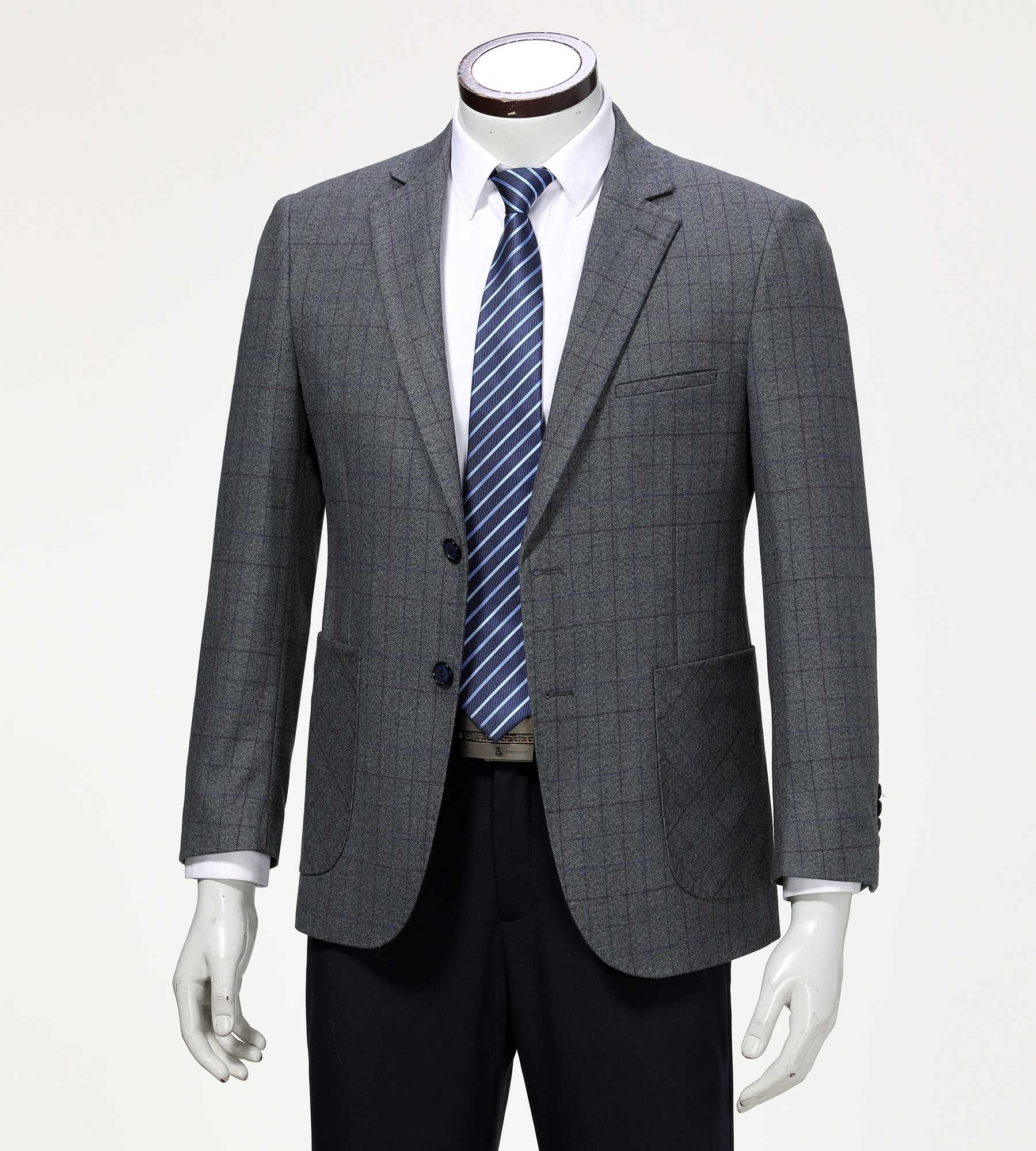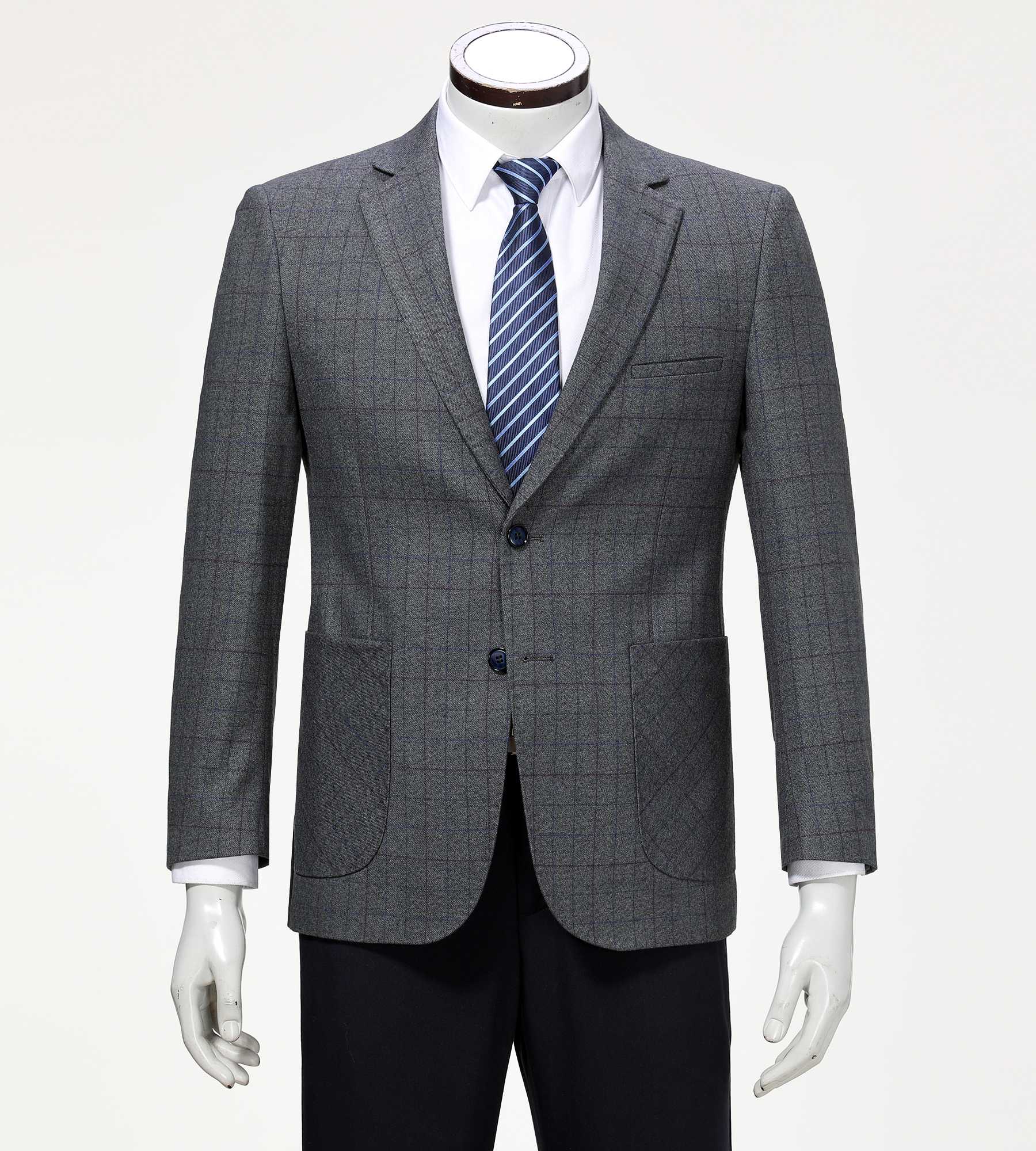 / 春裝新款品牌中年男士西服商務休閑男裝羊毛格子單件西裝上衣外套