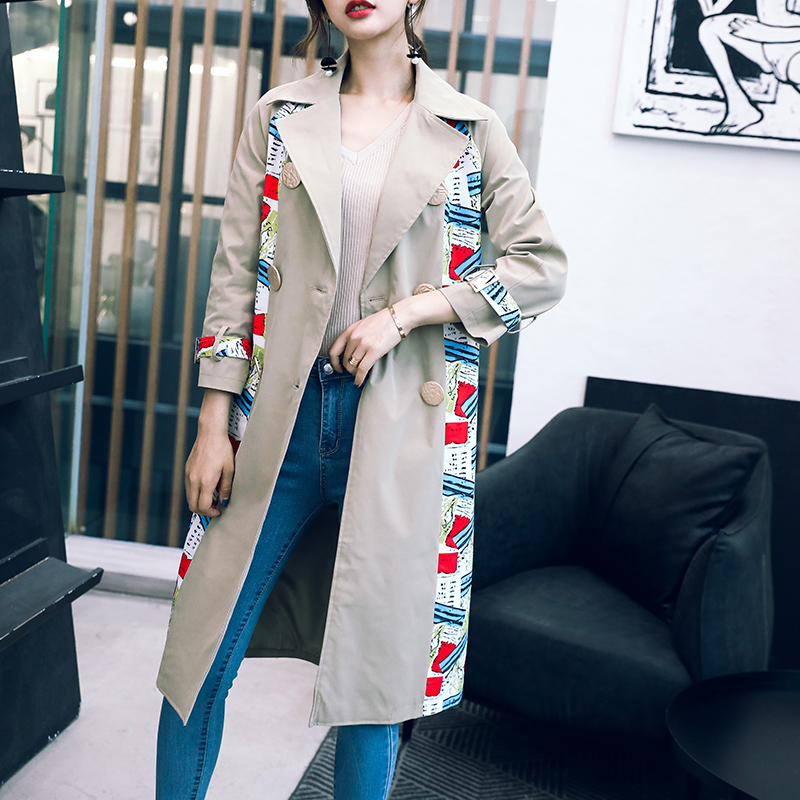 港風雙排扣寬松時尚韓版秋季風衣過膝外套女中長款2018新款大衣潮