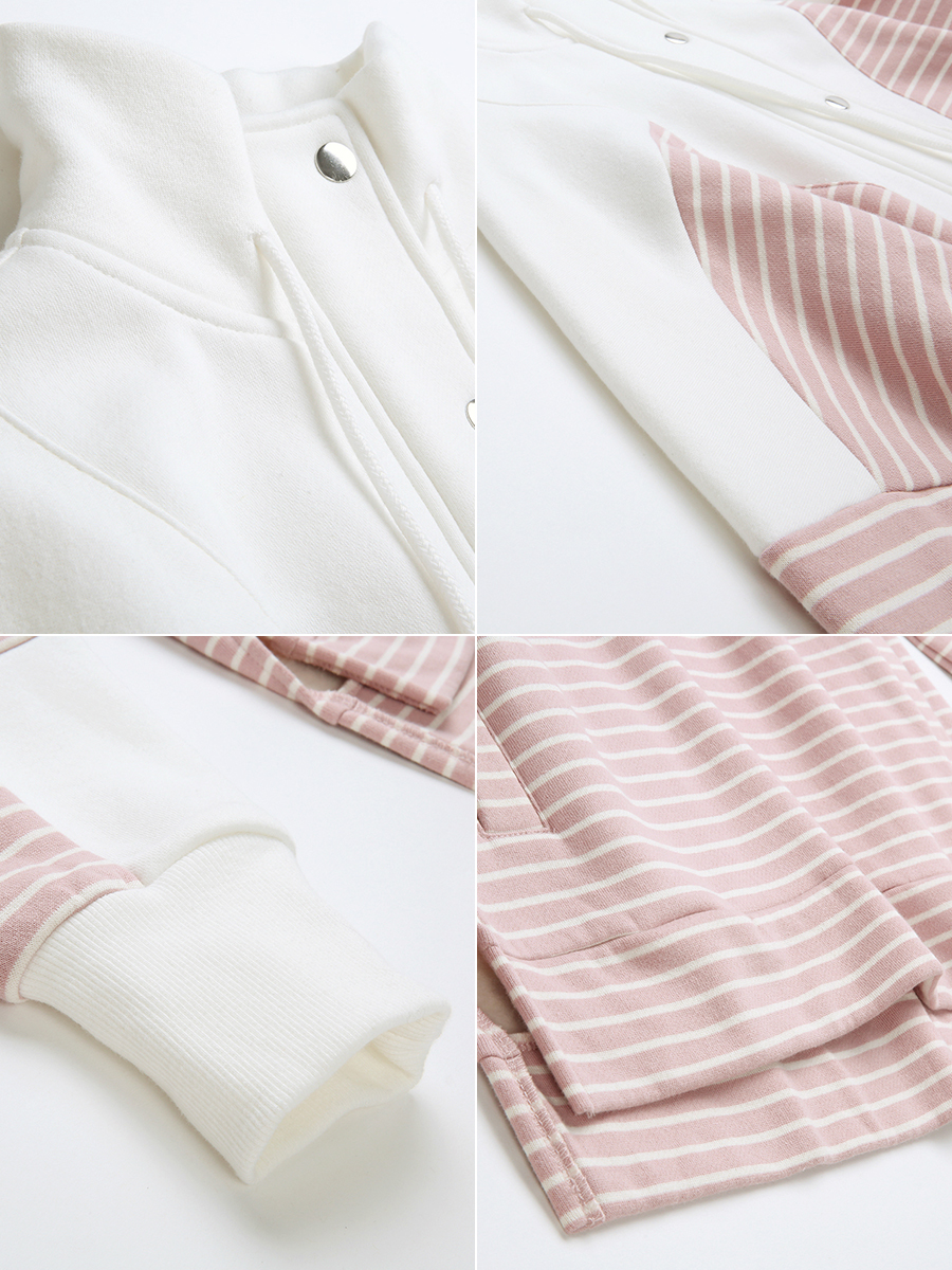 / MG小象粉色條紋衛衣女個性寬松2018秋冬新款套頭休閑學生拼接上衣