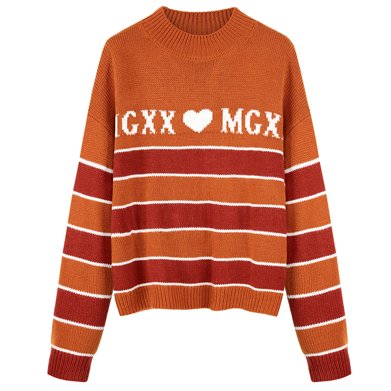 MG小象條紋chic毛衣女長袖寬松秋冬2018新款慵懶風針織套頭上衣潮
