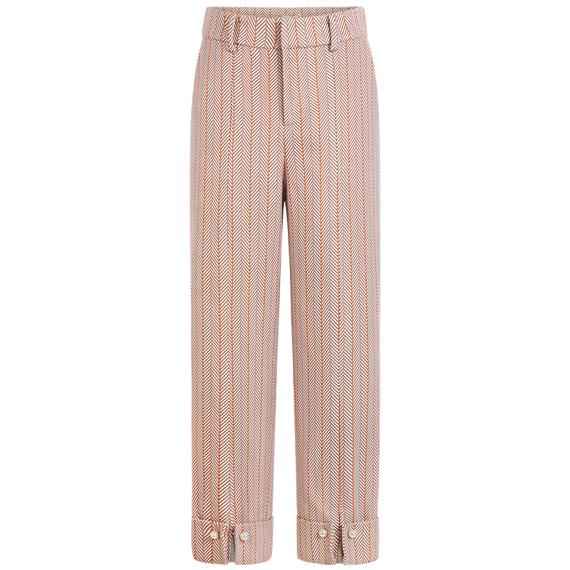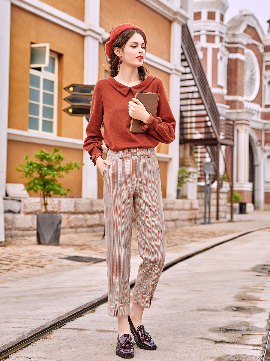MG小象時尚條紋休閑褲女秋冬新款寬松高腰直筒褲開叉chic九分褲子