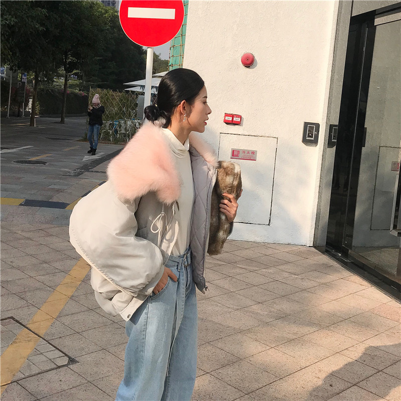 2018秋冬新款韓版時尚大衣保暖寬松chic氣質女裝毛領加厚棉服外套