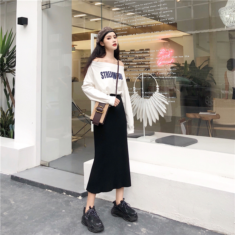搭配螺紋收口的下擺 搭配半身裙也很有街拍的感覺,隨意