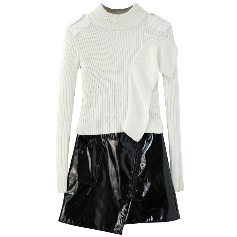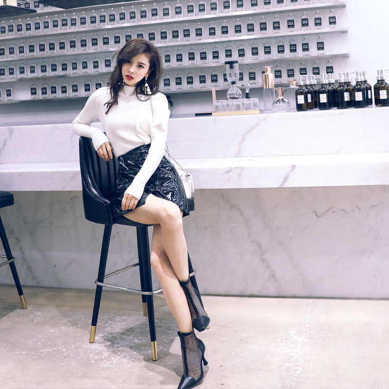 / 名媛氣質2018秋冬季女裝網紅女神時尚毛衣性感亮皮裙套裝女兩件套