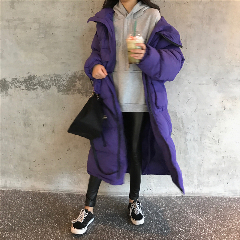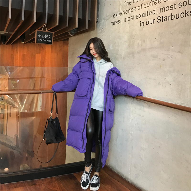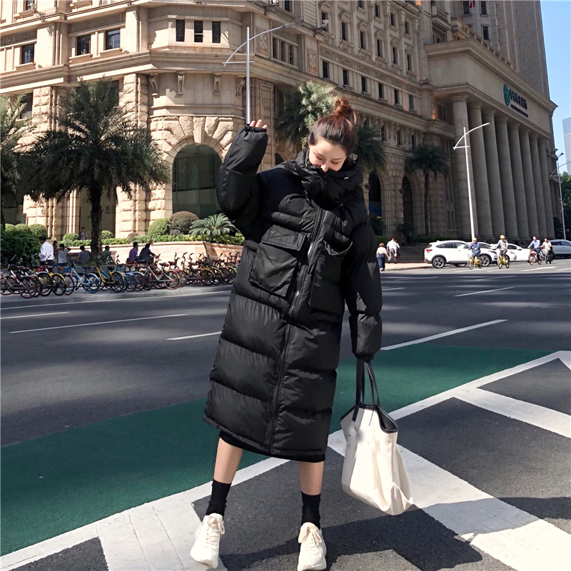 2018冬季新款韓版外套立體雙口袋手塞棉加厚保暖中長款過膝面包服