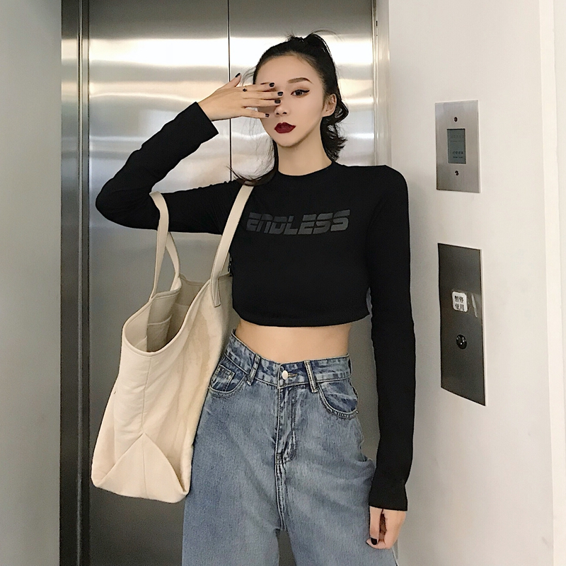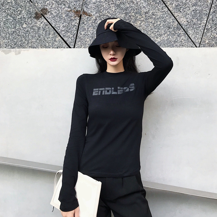 秋冬新款港風字母印花時尚百搭chic修身顯瘦長袖打底T恤衫閨蜜裝