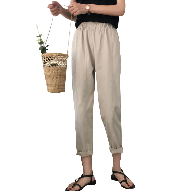 / 夏季女裝韓版寬松純色松緊腰蘿卜褲哈倫褲高腰顯瘦九分褲休閑褲潮