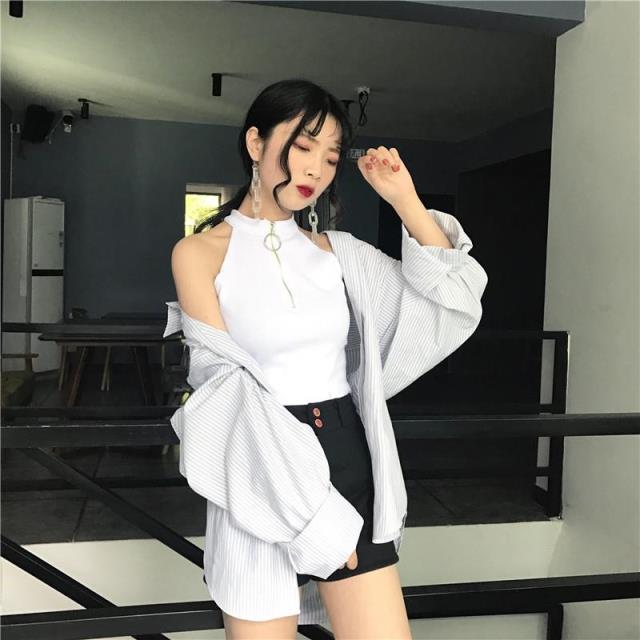港味復古2018韓版心機露肩外穿露臍百搭無袖掛脖打底chic上衣背心