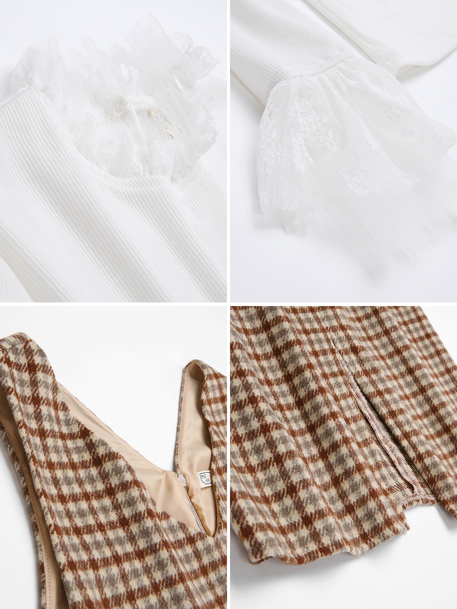 上衣-白色|連衣裙-格子