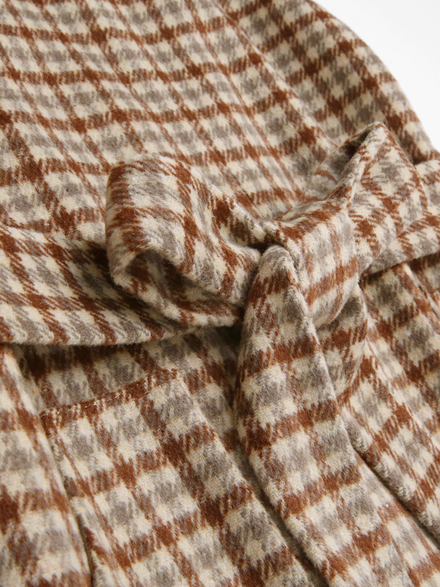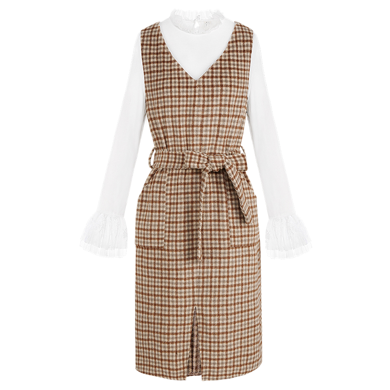 MG小象中長款收腰連衣裙女秋裝新款白色長袖寬松上衣復古格子裙子