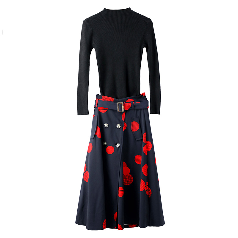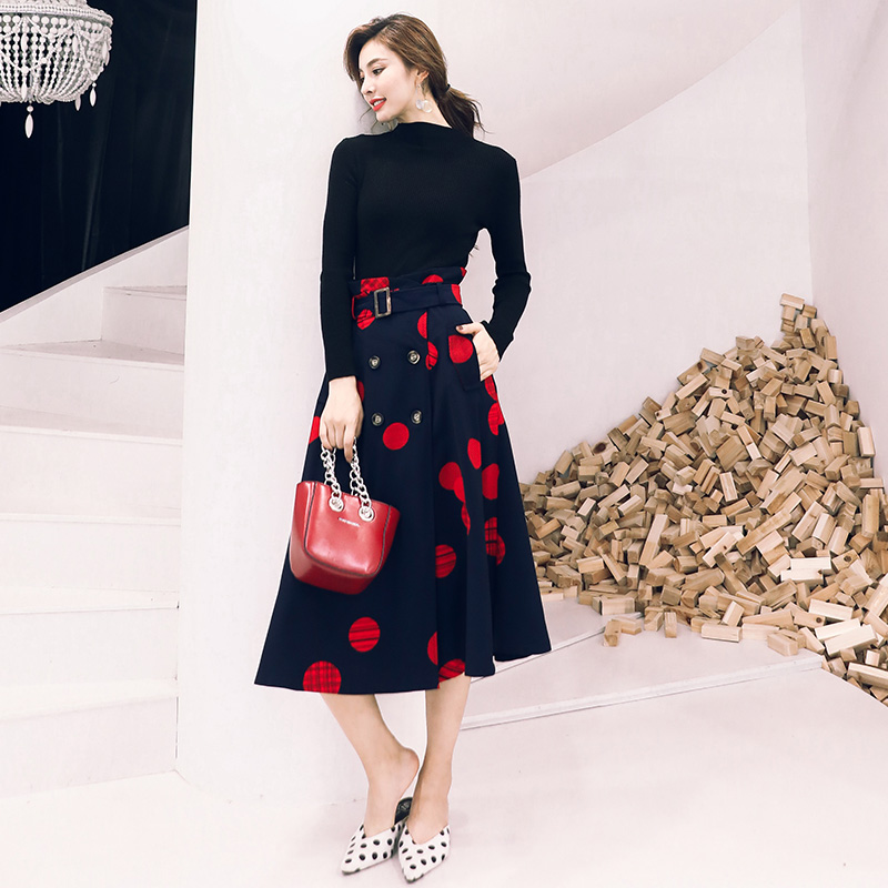 / 名媛女神套裝秋兩件套網紅針織衫上衣收腰氣質裙子高腰半身長裙潮