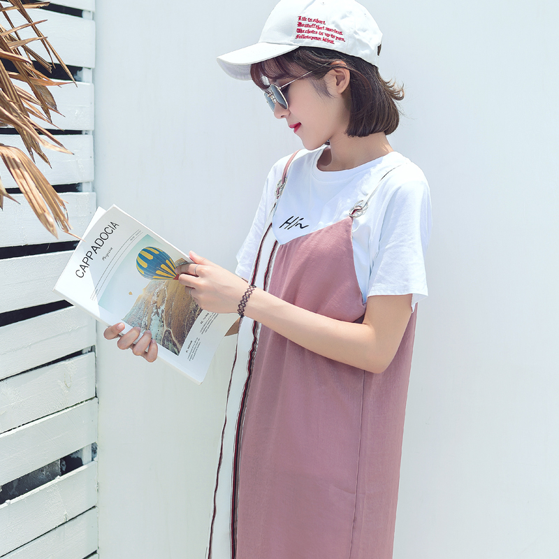 / 夏裝新款女裝韓版甜美不規則寬松連衣裙外搭拼接條紋學生裙子