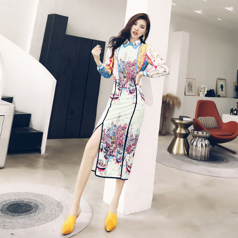 / 名媛氣質女神復古印花女裝2018秋季新款襯衫裙子套裝半身裙兩件套