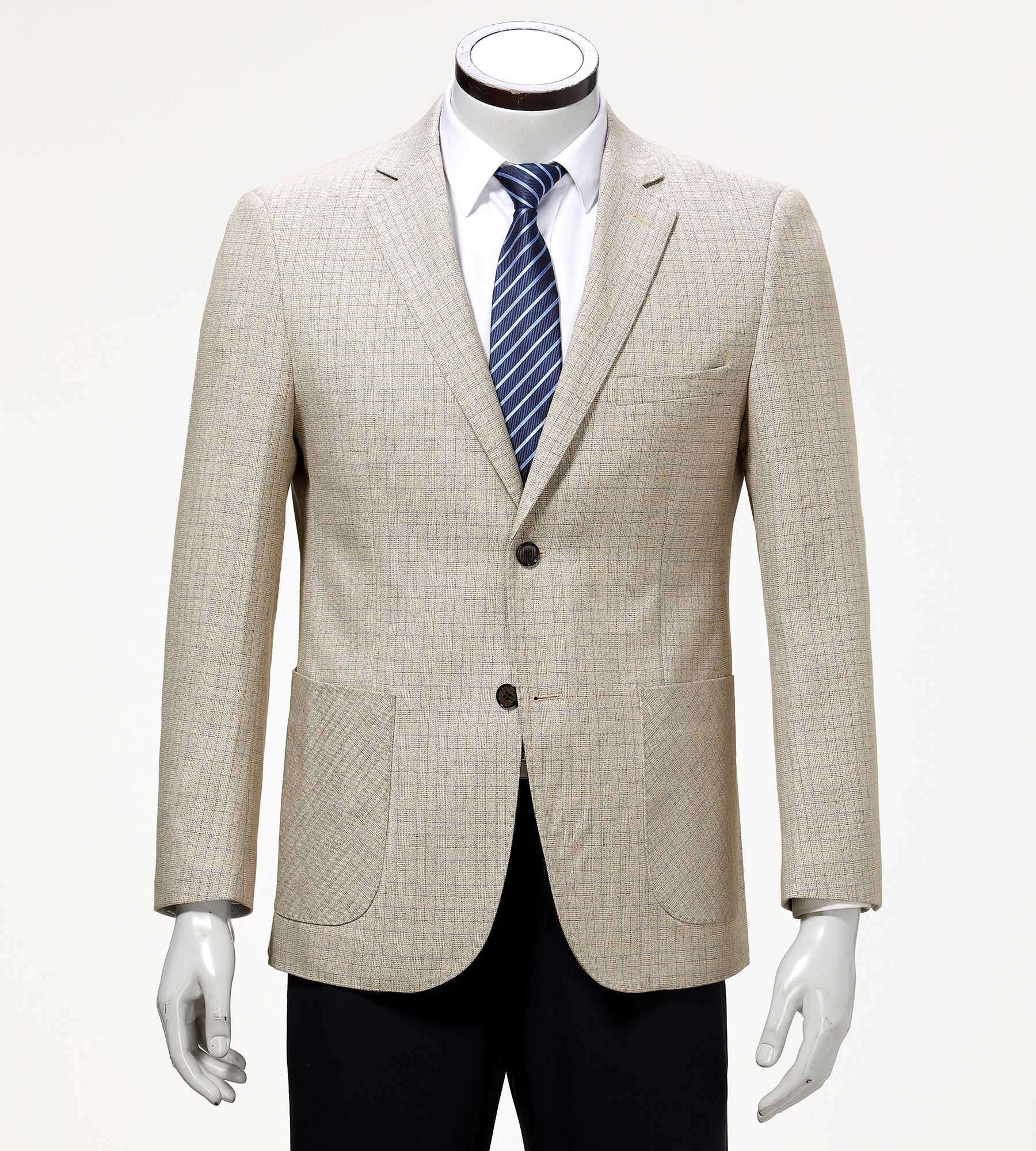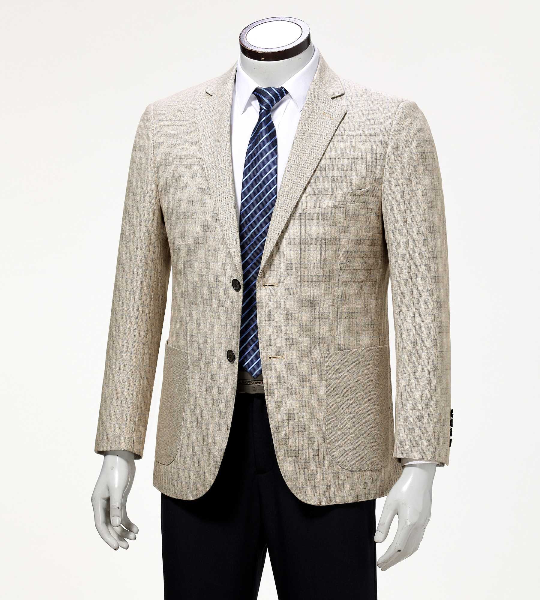/ 18春裝新款品牌中年男士西服休閑男裝羊毛格子單件西裝外套男上衣